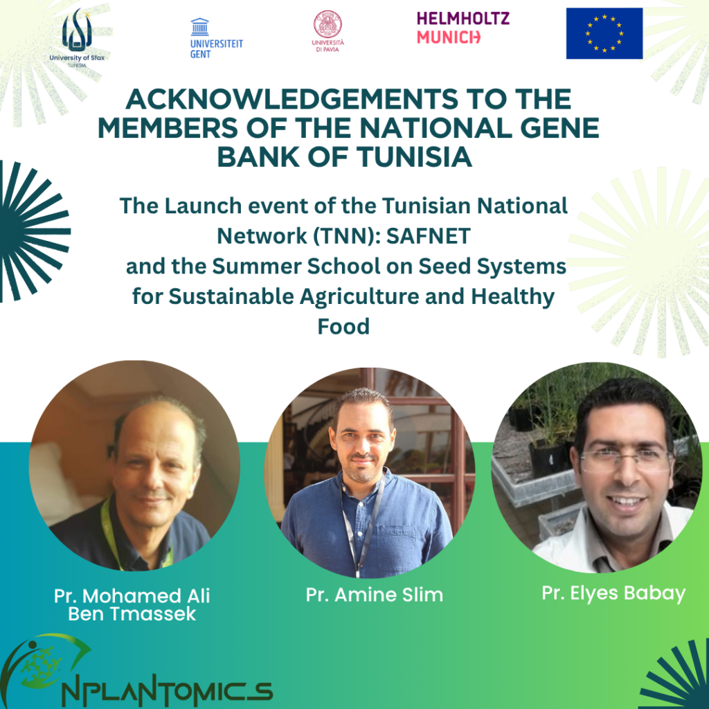 Gene Bank (@ BNG) — Prof. Mohamed Ali Ben Tmessek, Prof. Amine Slim, and Prof.Elyes Babay — for their valuable contributions and active participation during the launch event of the Tunisian National Network -SAFNET, and the Summer School on Seed Systems for Sustainable Agriculture and Healthy Food.